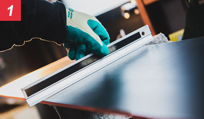 厳しい熟練の職人があなたの大切なスノーボードを見極め、一本一本に合わせた加工メニューを構築することからすべての作業は始まります。
